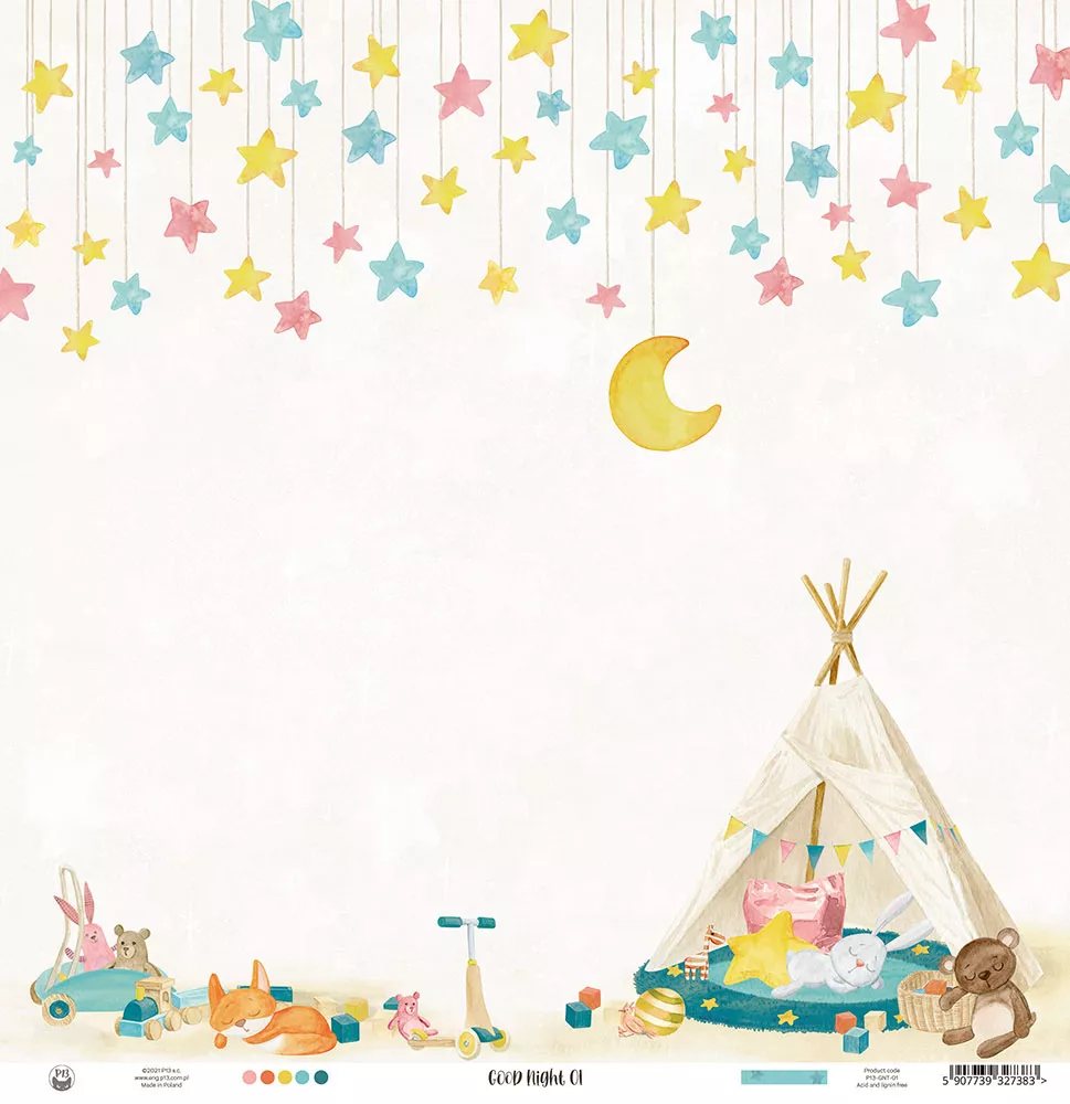 Создавайте уникальные истории с Бумага "Good Night - 01" (Piatek13). Яркие цвета, интересные узоры и различные текстуры — все, что нужно для ваших творческих экспериментов.
