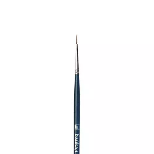 Художественная профессиональная кисть из синтетического волоса с цельнотянутой медной обоймой и длинной деревянной ручкой. Отлично подходит для прорисовки мелких деталей, леттеринга и контурного рисунка. Диаметр ворса 0,9 мм, длина 9 мм. Общая длина кисти 28,5 см