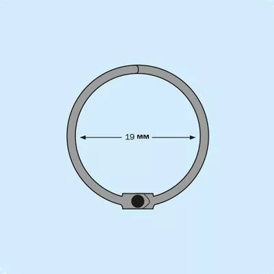 Металлическое разъемное кольцо, внутренний диаметр 19 мм, внешний диаметр 24 мм. Разъемные кольца используются для быстрой и легкой фиксации бумаги, или файловых документов, при создании альбомов и блокнотов, ежедневников. Для работы с кольцами не требуется дополнительных инструментов. Чтобы альбом или блокнот хорошо перелистывался, толщина корешка должна составлять не более 2/3 от диаметра кольца