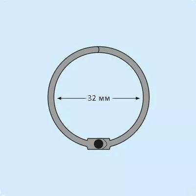 Металлическое разъемное кольцо, внутренний диаметр 32 мм, внешний диаметр 37 мм. Разъемные кольца используются для быстрой и легкой фиксации бумаги, или файловых документов, при создании альбомов и блокнотов, ежедневников. Для работы с кольцами не требуется дополнительных инструментов. Чтобы альбом или блокнот хорошо перелистывался, толщина корешка должна составлять не более 2/3 от диаметра кольца