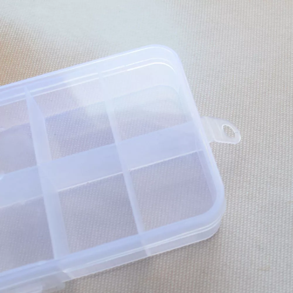 Размер контейнера 12,7х6,5 см высота 2 см. Контейнер оборудован пластиковым ушком-подвесым. Для экономии места органайзер можно хранить вертикально.
