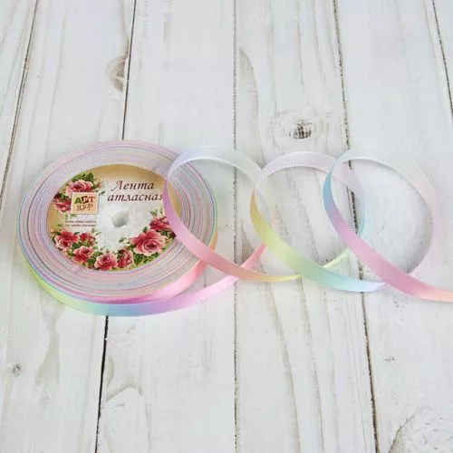Лента атласная "Разноцветная радуга", ширина 1 см, длина 17 м (АртУзор)