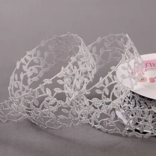 Лента фигурная "Ветви", цвет серебряный, длина 1 м (АртУзор)