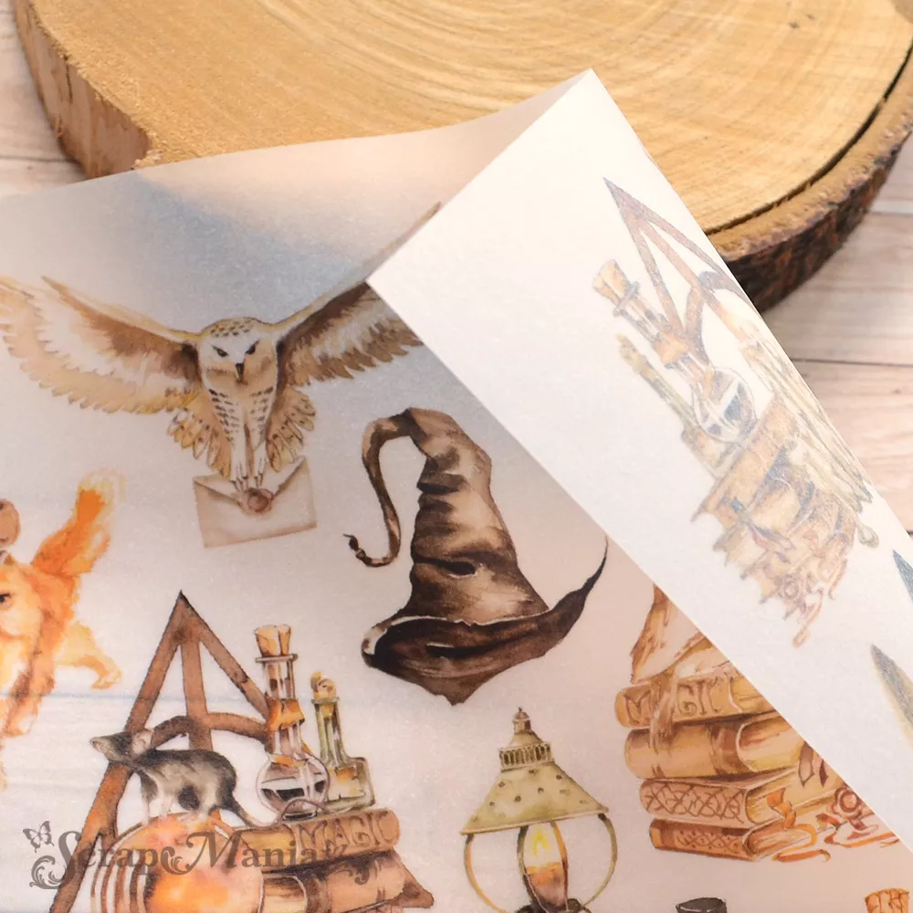 Описание Лист плотной кальки (веллума) с принтами для совершения особого волшебства. Плотность 150 гр/м2