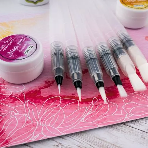В наборе 6 аква-кистей, размеры 2XL, XL, L, M, XS и S. Кисти с резервуаром для жидкости, объем 10 мл. Предназначены для акварельной живописи, леттеринга (каллиграфии). Благодаря контролируемому потоку воды из встроенного резервуара вы сможете достичь эффекта плавной растяжки, мягких переходов полутонов, создать равномерную заливку. Аква-кисти также отлично подойдут для графических работ. Для работы необходимо в резервуар для воды залить "Аква-чернила", что обеспечит непрерывную подачу необходимого цвета. Специальный защитный колпачок предотвратит залом ворса. Имеется специальная область на корпусе для максимально эффективной подачи жидкости или чернил. Длина кистей 18 см, диаметр корпуса 1 см