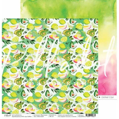 Набор бумаги 20х20 см "Фруктовая коллекция", 6 листов (Polkadot)