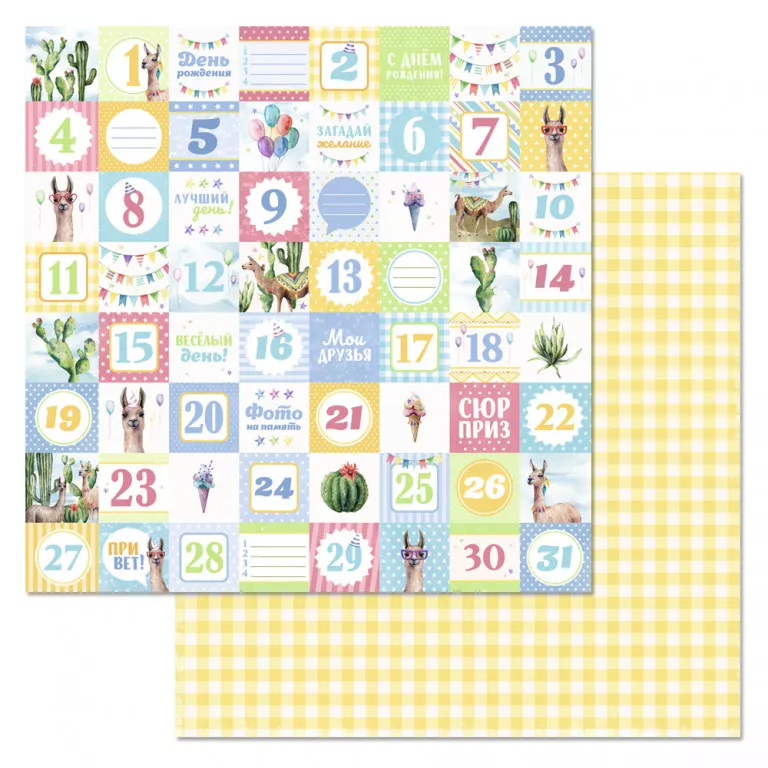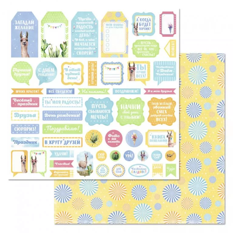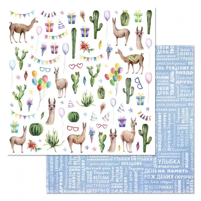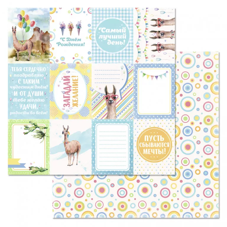 В наборе 12 двусторонних листов различного дизайна, в том числе 2 листа с картинками для вырезания и 2 листа с карточками. Плотность 180 гр/м2. С ламой праздник в тысячу раз веселее и забавнее! Компания заводных, кучерявых красавчиков ждет недождется, когда же начнется самая яркая и веселая вечеринка. Разноцветные шарики надуты, торт готов, праздничные флажки и гирлянды развешаны. Осталось только встретить именинника...