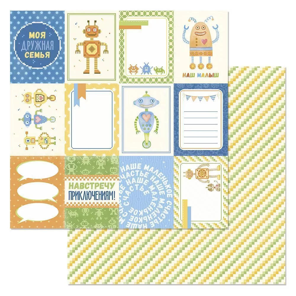 Набор бумаги 20х20 см "Роботы", 12 листов (ScrapMania)