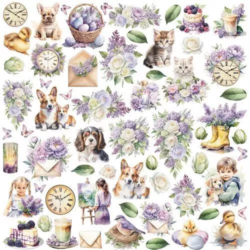 В наборе 6 двусторонних фоновых листов разного дизайна, 2 листа с карточками и картинками для вырезания. Плотность 190 гр/м2. Прекрасное лето уютно расположилось на листах этой коллекции. Красивые рассветы и закаты, букеты сирени, бескрайние поля зелени - все это обязательно сделает вас чуточку счастливее