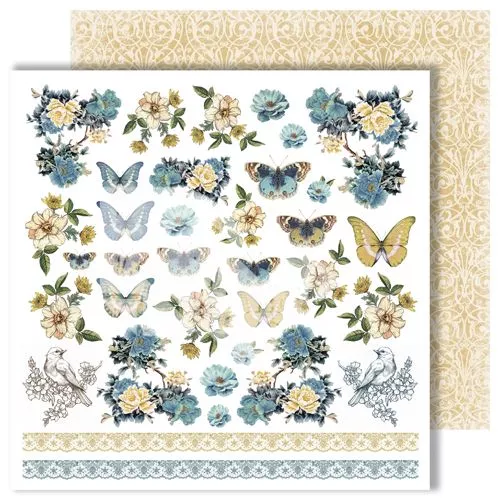 В наборе 12 листов (по 2 листа каждого дизайна), в том числе 2 листа с картинками для вырезания. Плотность 250 гр/м2. Интересный дуэт насыщенно-синего и солнечно-желтого заставляет сделать глубокий вдох и с головой погрузиться в творческий мир. Мир, который наполнен легкостью бабочек, нежностью цветочных лепестков и тайнами, живущими за красивыми дверями