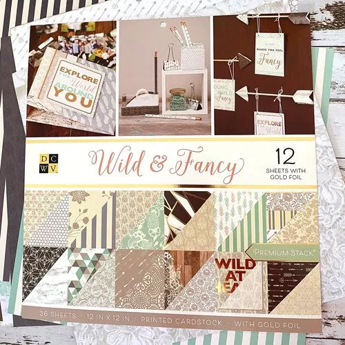 Набор бумаги 30х30 см с фольгированием "Wild & Fancy 1/2", 18 листов (DCWV)