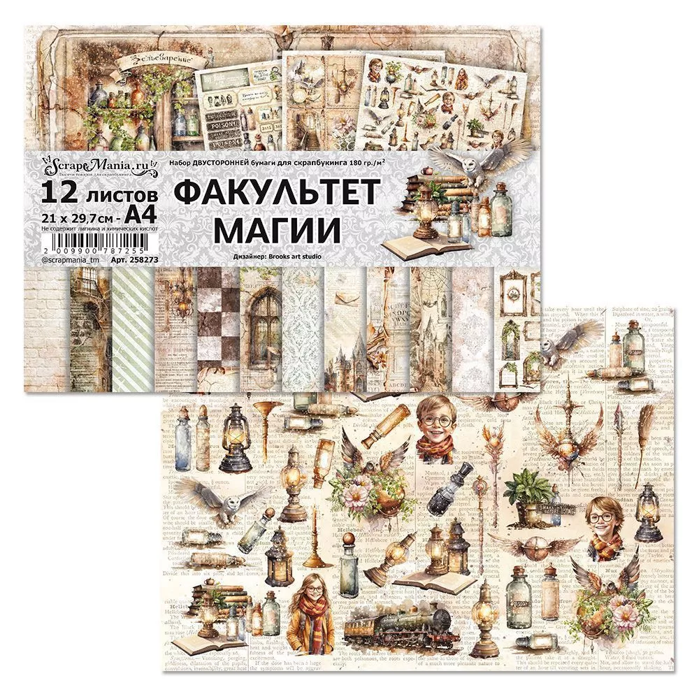 Набор бумаги А4 "Факультет магии", 12 листов (ScrapMania)