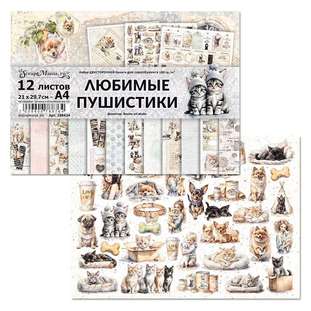 Набор бумаги А4 "Любимые пушистики", 12 листов (ScrapMania)