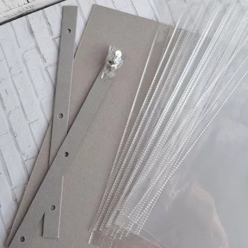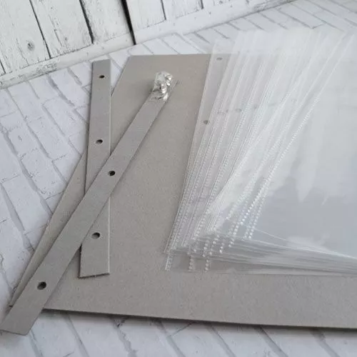 В наборе 10 файлов для хранения фотографий и страничек, размер кармашка 31х30 см. Подшивается к стандартным папкам или альбомам с 3 кольцами