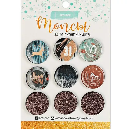 В наборе 9 фишек на клеевой основе. Диаметр 2,5 см. 3 фишки полностью покрыты глиттером. Настоящее новогоднее украшение!