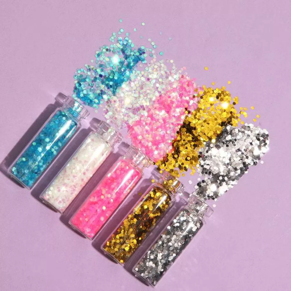 В наборе 12 баночек с крупным глиттером. Можно использовать как наполнитель для шейкера или в качестве подвески на корешок блокнота. Каждый бутылек имеет плотную крышку с отверстием. Внимание! Соотношение цветов в упаковке может не совпадать с указанными на фото