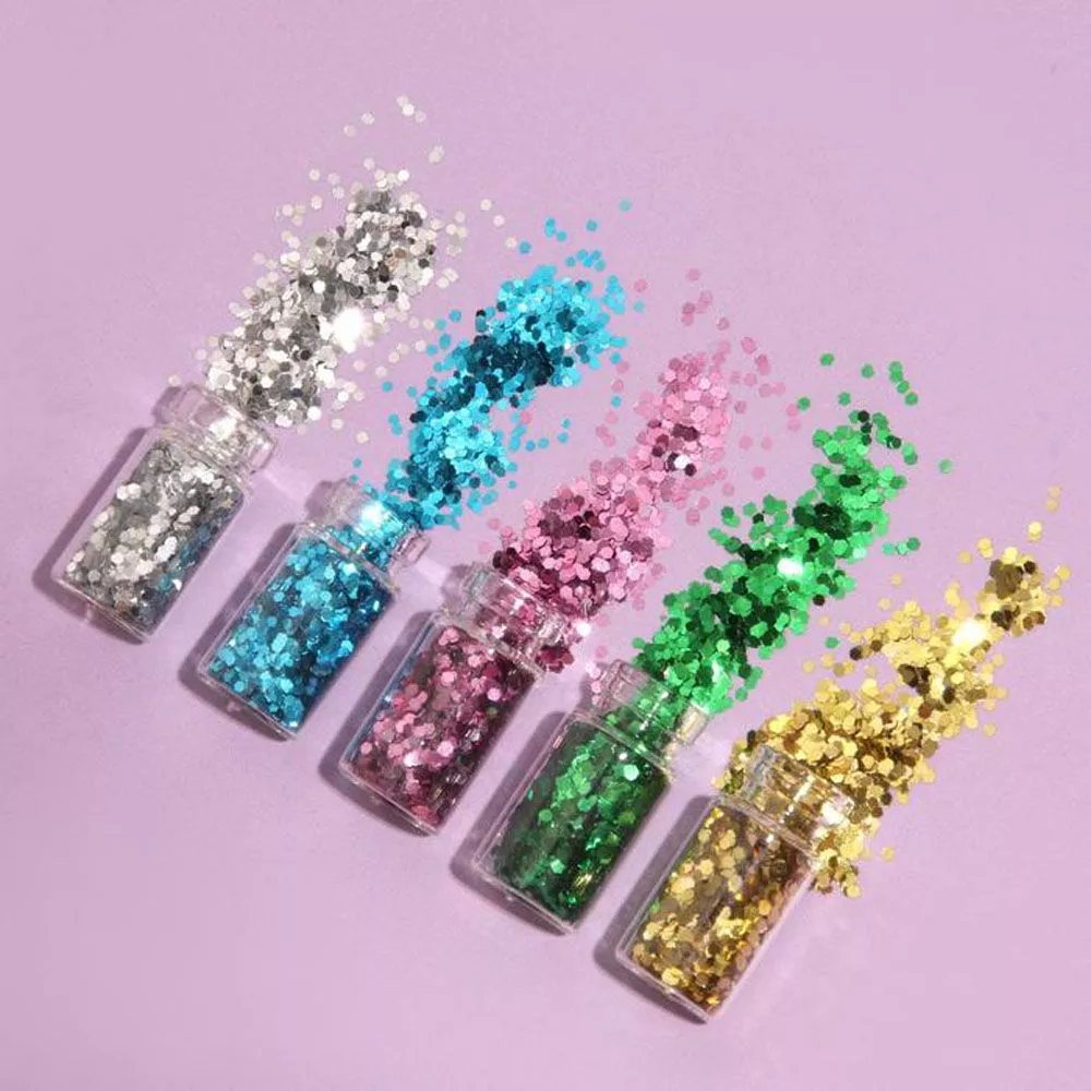 В наборе 12 баночек с крупным глиттером. Можно использовать как наполнитель для шейкера или в качестве подвески на корешок блокнота. Каждый бутылек имеет плотную крышку с отверстием. Внимание! Соотношение цветов в упаковке может не совпадать с указанными на фото
