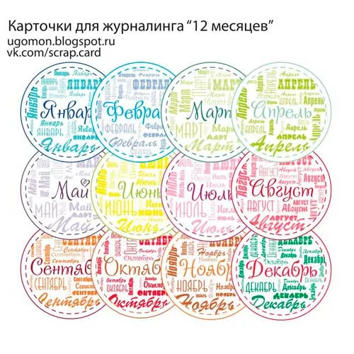 Украсьте ваши проекты при помощи Набор карточек "12 месяцев" (Ugomon). У нас вы найдете всё — от стильных наклеек и бантиков до уникальных брошей.