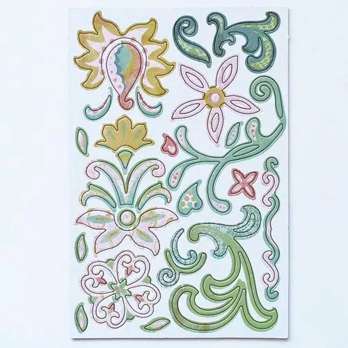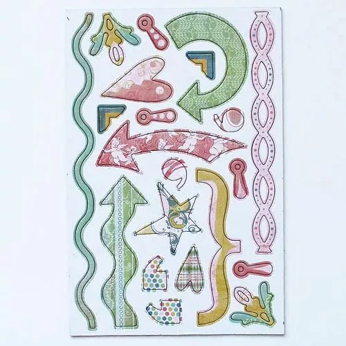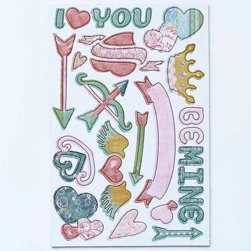 В наборе 4 листа с различными высечками из плотного картона на клеевой основе (размер листа 14,5х22 см, толщина 0,2 см)