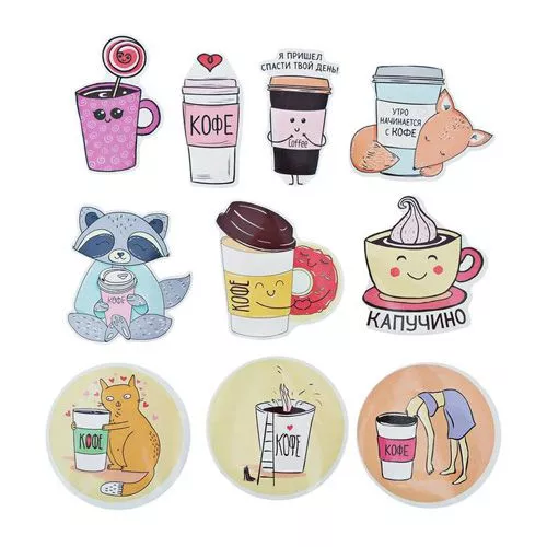 В наборе 10 глянцевых наклеек, средний размер 4,5х7 см