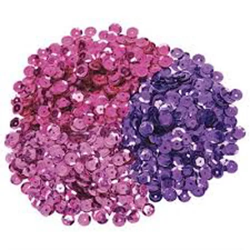 В наборе 3 цвета пайеток диаметром 8 мм - фиолетовый, фуксия, розовый