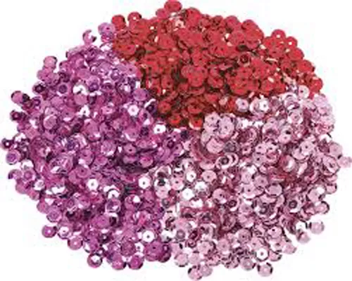 В наборе 3 цвета пайеток диаметром 6 мм - красный, фуксия, розовый
