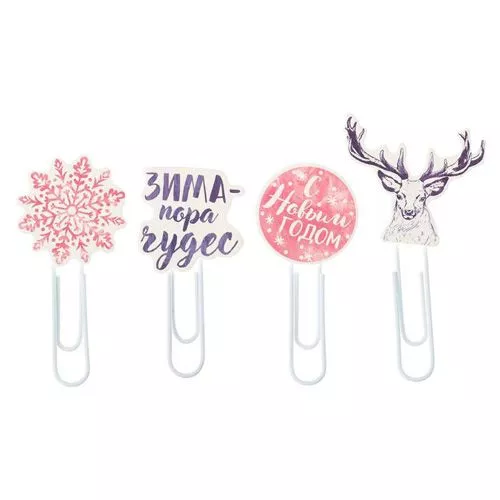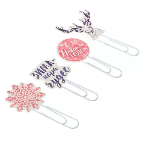 В наборе 4 скрепки с бумажным украшением размером 3х7 см