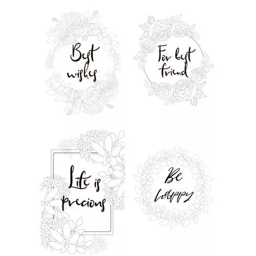 В наборе 8 карточек с черно-белыми принтами из бумаги для акварели, размер 10х15 см, плотность 200 гр/м2. Карточки идеально подходят для раскрашивания акварелью или аква чернилами