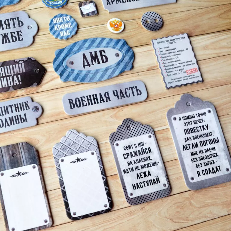 Украсьте ваши проекты при помощи Набор цветного чипборда "Армейский альбом" (ScrapMania). У нас вы найдете всё — от стильных наклеек и бантиков до уникальных брошей.