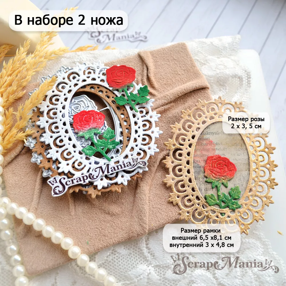В наборе 2 ножа, соединенных перемычкой, которые при необходимости можно перекусить. Общий размер ножа 6,7х8,3 см. Внешний размер 6,5х8,1 см (внутренний 3х4,8 см), размер розы 2х3,5 см. Отлично сочетаются с ножами из серии "Дамские штучки" (арт. 242596, 242597, 242599, 242601, 242595 и 242598). Прекрасное дополнение к любым девичьим задумкам. Идеально подойдут для создания романтичных альбомчиков, стильных блокнотов и открыток милым модницам