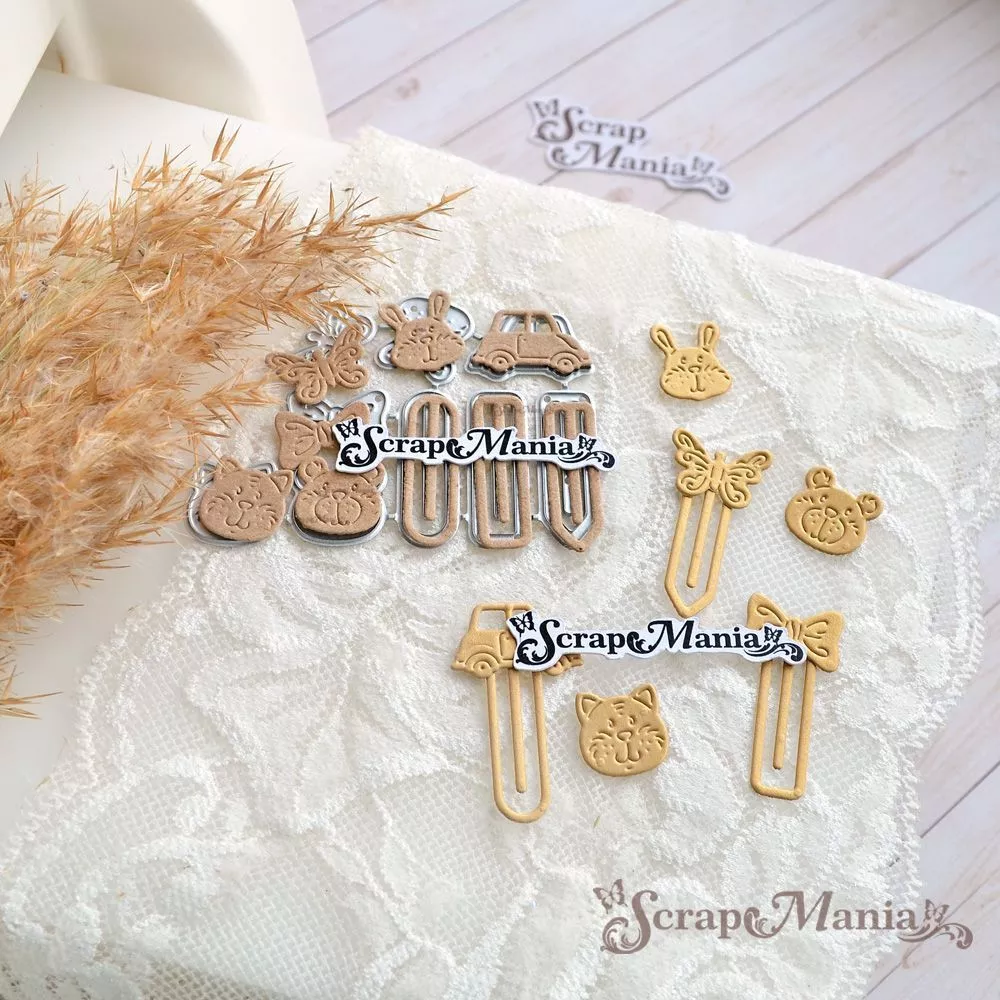 В наборе 9 ножей, соединенных перемычкой, которую при необходимости можно перекусить. Общий размер ножа 5,3х7,2 см. Размер скрепок 1х3,1 см (3 шт), декоративных элементов от 1,4х1,7 см до 1,6х2,2 см . Чудесный нож позволит Вам проявить невероятную фантазию в своих работах. Компонуйте, меняйте, переставляйте местами вырубку и создавайте свой невероятный дизайн. Отлично сочетается с другими ножами из серии "Детство" (арт. 255646, 255652 и др)
