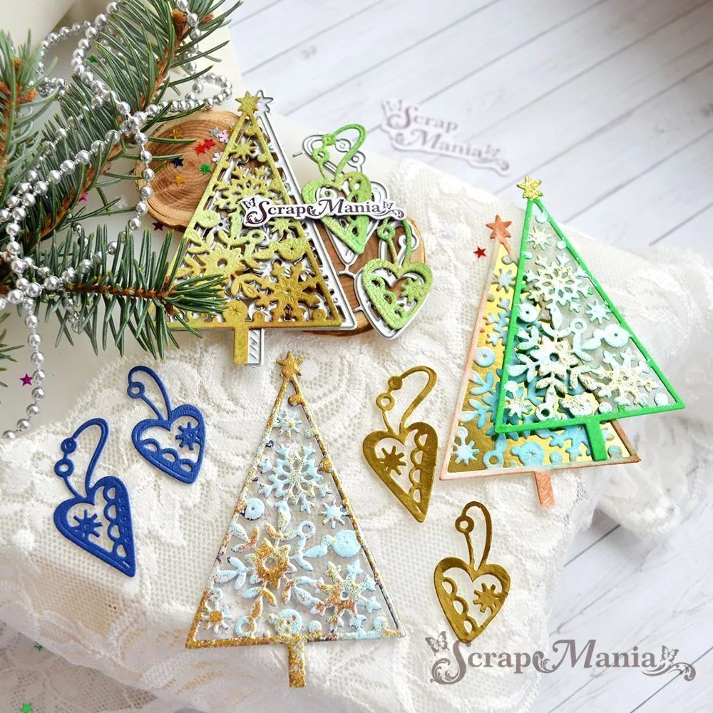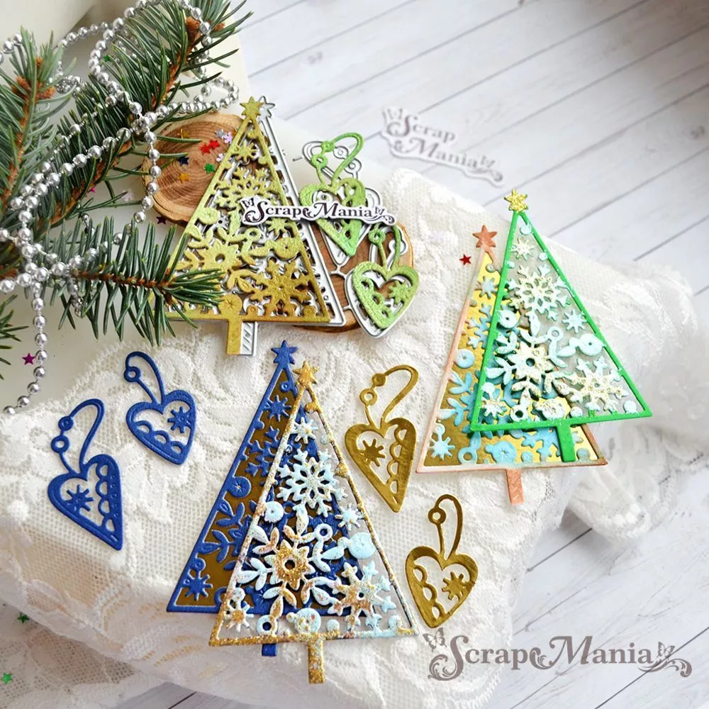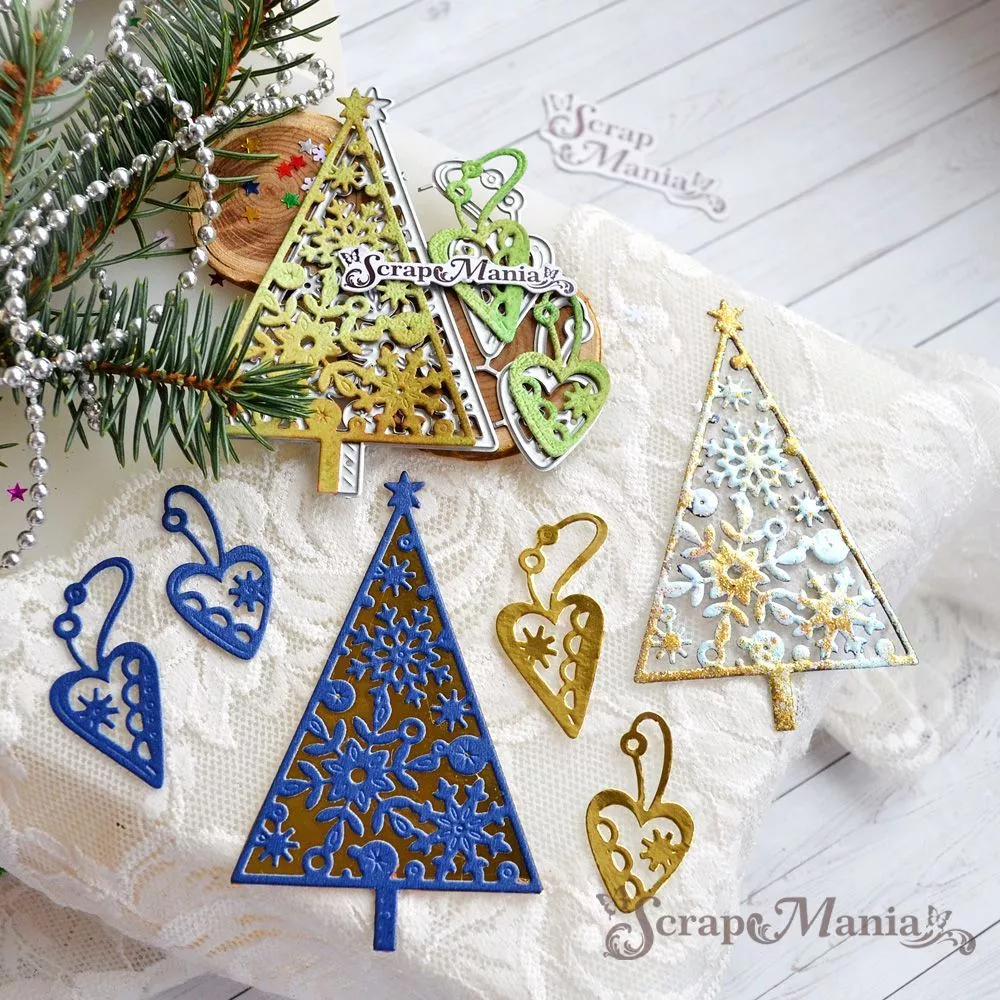 В наборе 3 ножа, соединенных перемычкой, которые при необходимости можно перекусить. Размер елки 5,8х9,4 см, размер подвесок 2,5х4,5 см и 2х3,9 см. Общий размер ножа 7,4х9,8 см. Вырубка прекрасно дополнит новогодние и зимние работы. Творите волшебство своими руками