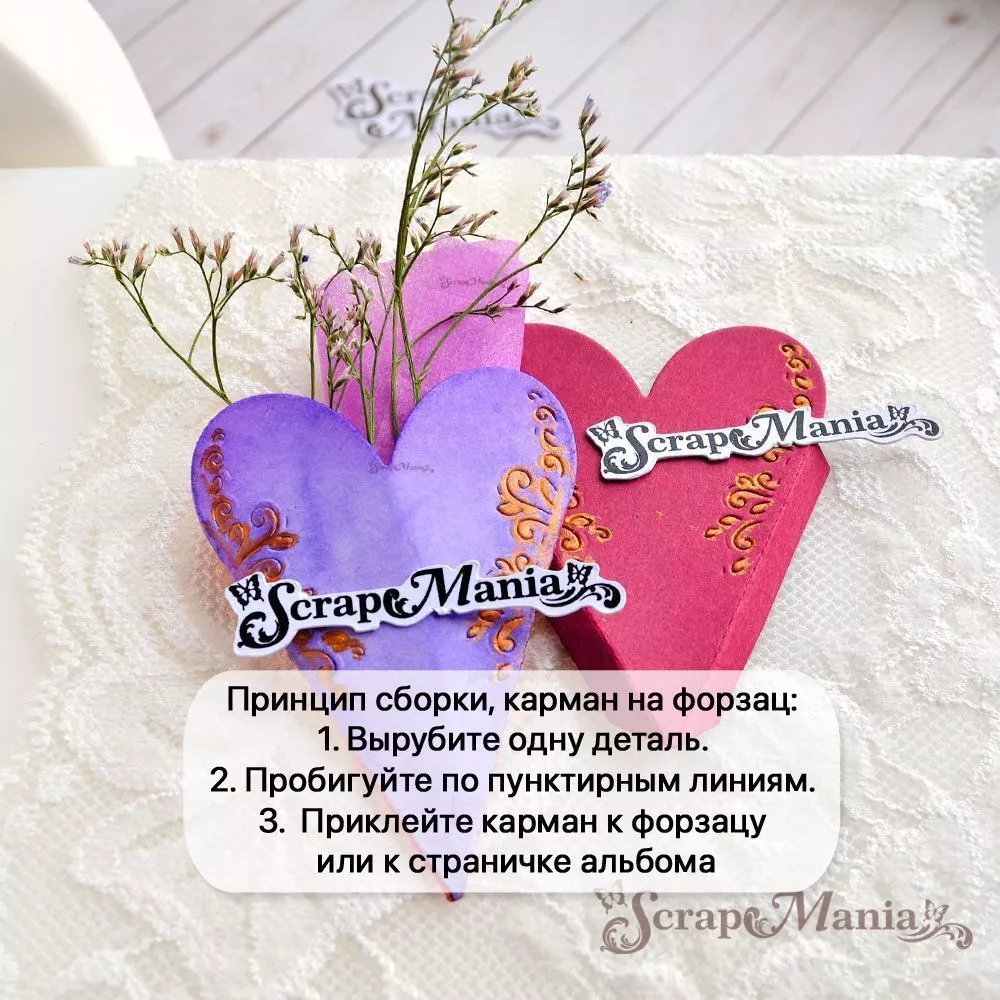 Размер ножа 5,5х7 см. Нож прекрасно подойдет для оформления форзацев или наполнения открыток, блокнотов и альбомов. Принцип сборки 1 вариант "Карман на форзац": 1. Вырубите одну деталь. 2. Пробигуйте по пунктирным линиям. 3. Приклейте карман к форзацу или к страничке альбома. Принцип сборки 2 вариант "Конвертик": 1. Вырубите две детали. 2. Пробигуйте по пунктирным линиям. 3. Приклейте сердца друг к другу. Конверт готов