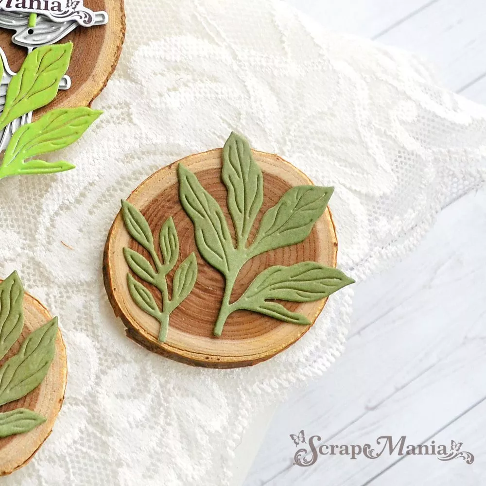 В наборе 3 ножа, соединенных перемычкой, которую при необходимости можно перекусить. Общий размер ножа 8х5,7 см. Размер большой веточки 4,5х4,6 см, средней - 4х4,7 см, маленькой - 1,6х3,2 см. Прекрасное дополнение к любым ботаническим композициям. Растительные детали идеально подойдут для создания цветочных композиций и дополнят ботанический блокнот или альбом-растрепыш