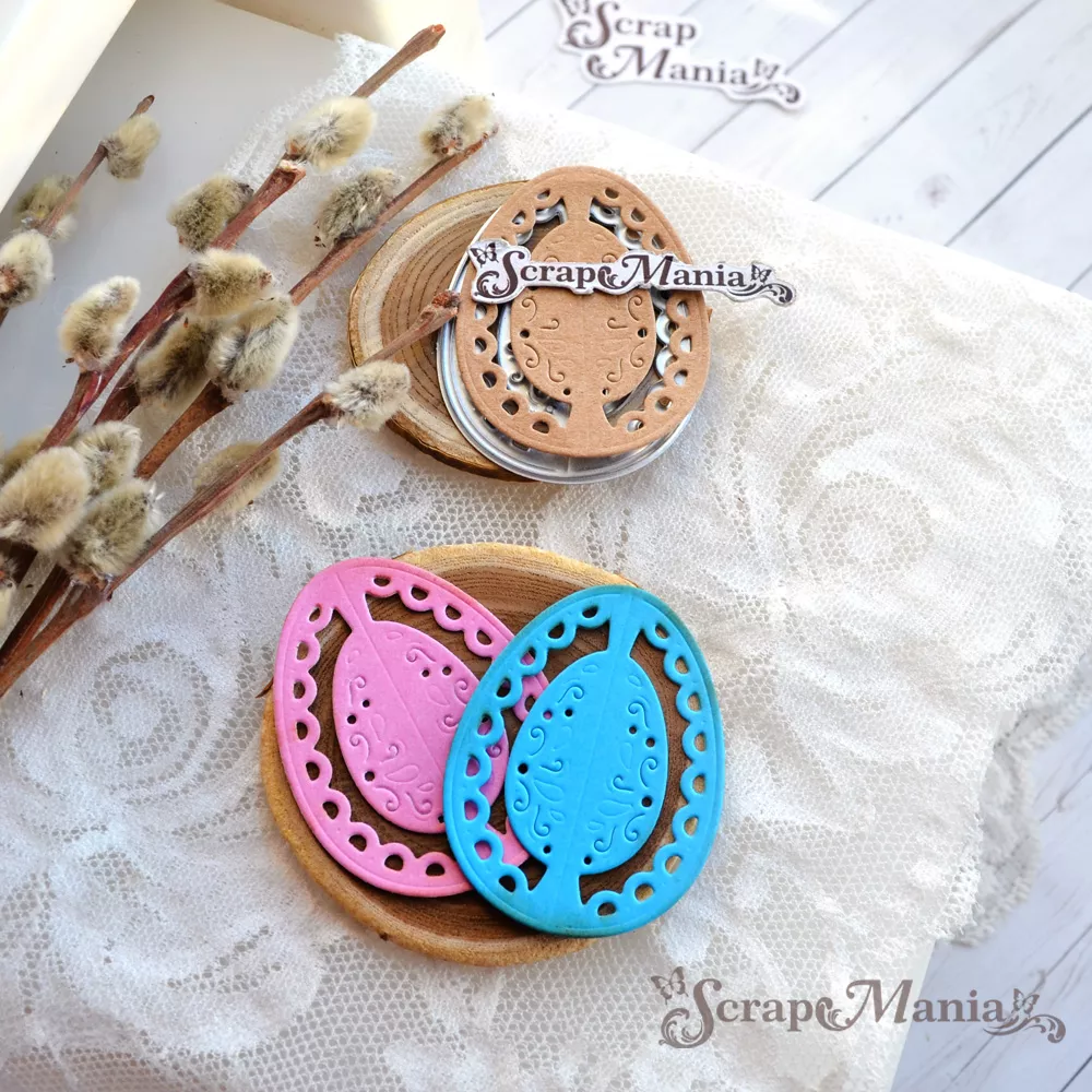 Размер 3,8х5 мм. С помощью этого ножа можно создать объемные украшения. Вариант 1: сделайте 3 или более вырубки, пробигуйте их вдоль линии по центру, сложите пополам, склейте друг с другом и прикрепите конструкцию на основу - получится объемный декор для открытки. Вариант 2: сделайте 6 или более вырубок, пробигуйте их вдоль линии по центру, сложите пополам, склейте друг с другом и прикрепите ленточку - чудесное украшение для пасхального дерева готово! Нож отлично подойдет для создания пасхального декора, открыток и весеннего настроения. Сочетается со всеми ножами из серии "Пасха" (арт. 246840, 246838 и др)