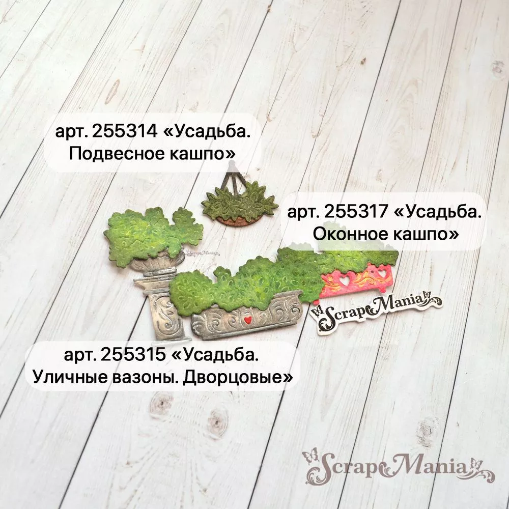 В наборе 2 ножа, соединенных перемычкой, которую при необходимости можно перекусить. Общий размер 4х5 см. Размер кашпо 1,5х4,1 см, растения 2,3х5 см. Идеальное дополнение к цветочным и деревенским работам. Чудесный нож-конструктор позволит Вам проявить невероятную фантазию в своих работах. Компонуйте, меняйте, переставляйте местами вырубку и создавайте свой невероятный дизайн. Дополняйте композицию ножами из серии "Усадьба" (арт. 255308, 255309, 255310, 255312 и т.д.). А так же сочетайте с ножами из серии "Палисадник", Цветочный магазин" и "Цветочный комплимент"