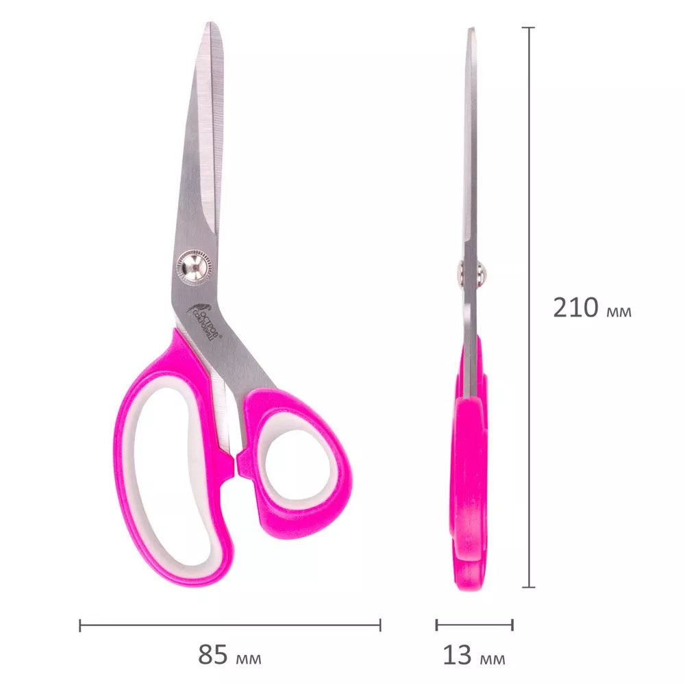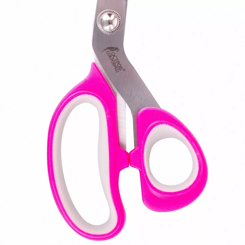 Портновские ножницы с эргономичными пластиковыми ручками цвета фуксия и с серыми вставками, отлично подходят для раскроя ткани. Длина ножниц 21 см , длина лезвия 8 см. Особо острые лезвия из нержавеющей стали легко разрезают материал, не заминая края