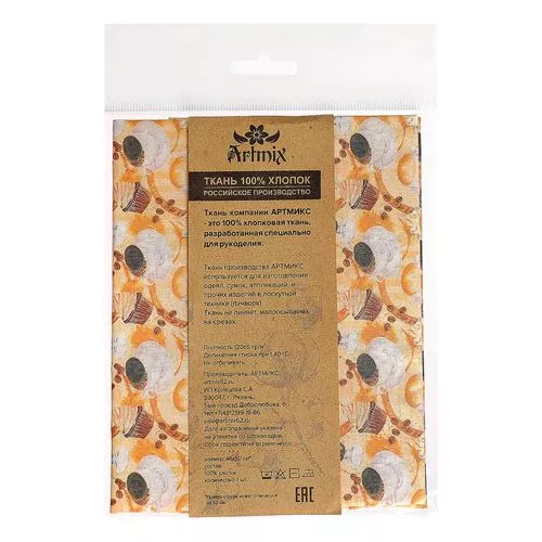 100% хлопковая ткань, разработанная специально для рукоделия. Ткань не линяет, малоосыпаема на срезах, плотность 120 гр/м2