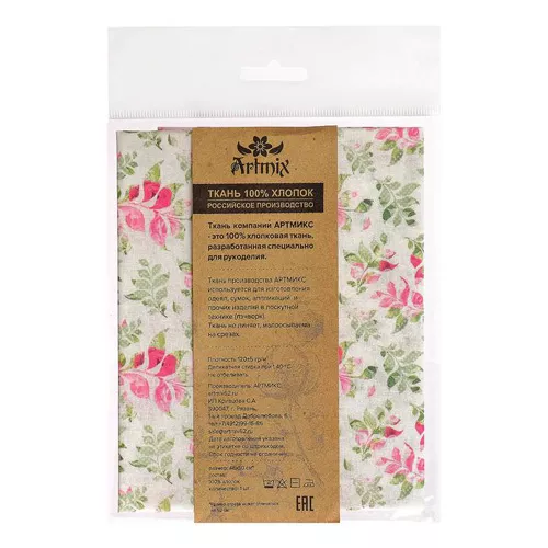 100% хлопковая ткань, разработанная специально для рукоделия. Ткань не линяет, малоосыпаема на срезах, плотность 120 гр/м2