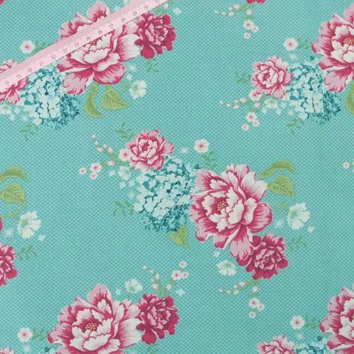 Отрез ткани 50х70 см "Цветочный мотив, цвет циан" (Tilda)