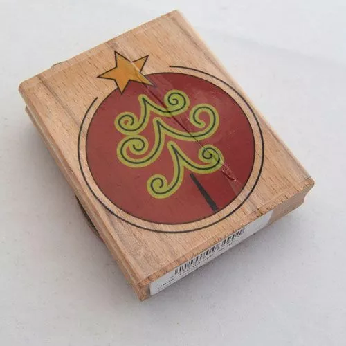 Резиновый штамп на деревянной основе "Елка в красном шаре"