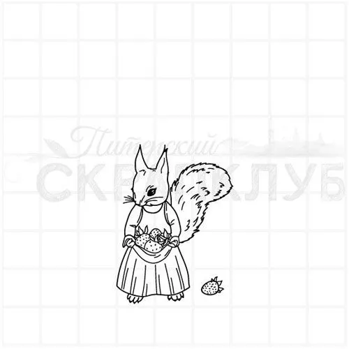 Штамп "Белка с клубникой", 3х4,2 см (Скрапклуб)
