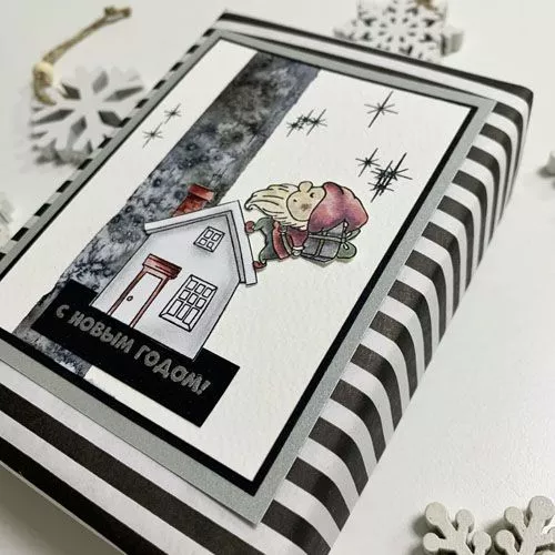 Штамп "Гном с подарком", 3,1х3,3 см (Скрапклуб)