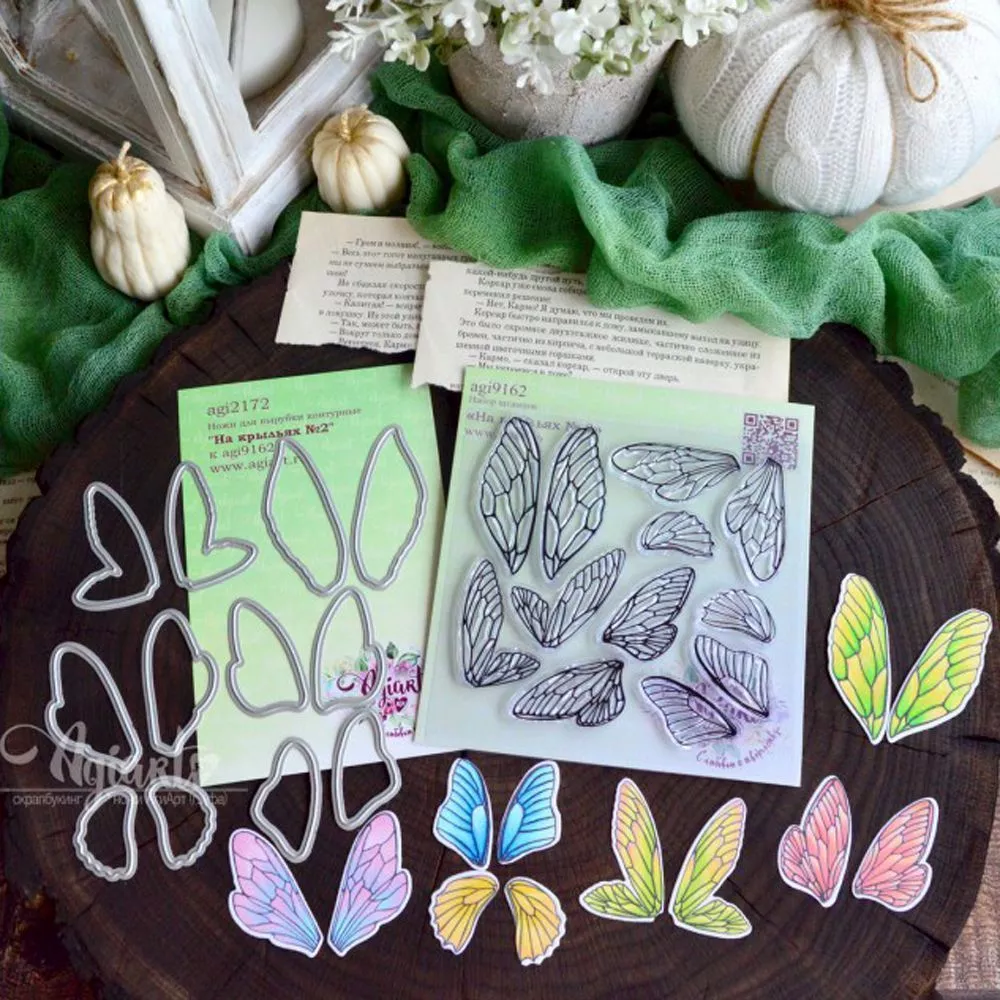 В наборе 12 штампов. Размер от 2,7х1,5 см до 6х2 см. сочетаются с ножами "На крыльях №2" арт 257831
