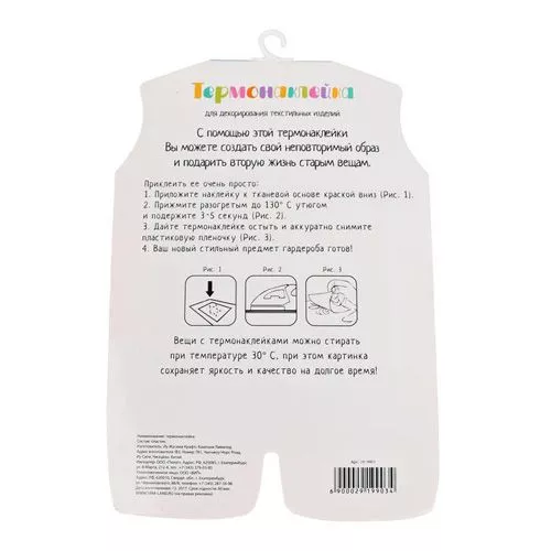Всем хорошо знакомая "утюжная переводка" станет отличным украшением обложки для детского альбомчика. Размер наклейки 12,7х13,5 см. Способ использования: кладём на поверхность краской вниз, прижимаем на 3-5 секунд разогретым до 130° С утюгом, дожидаемся остывания и удаляем пластиковую пленочку. Готово! Термонаклейка отлично выдерживает стирку при температуре 30° С