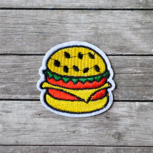 Украсьте ваши проекты при помощи Термонаклейка с вышивкой "Гамбургер". У нас вы найдете всё — от стильных наклеек и бантиков до уникальных брошей.