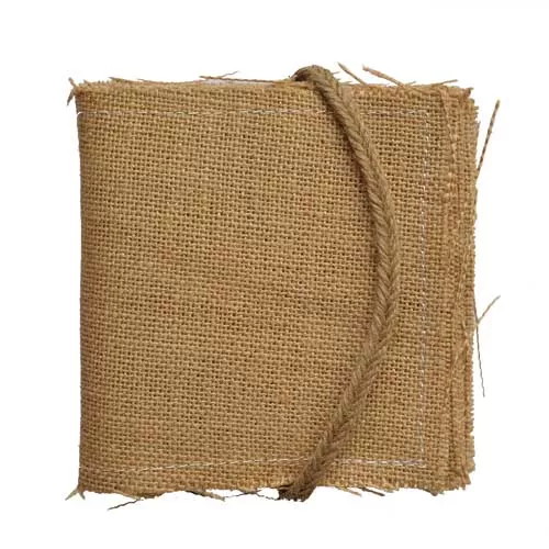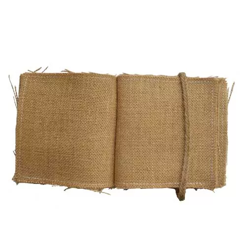 Заготовка состоит из 8 листов мешковины (размер 15х15 см) с застежкой из шнурка