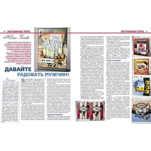 Тема номера - вдохновение! Статьи в тему: дорога к вдохновению и вдохновение по заказу, "теплая" бумага, давайте радовать мужчин и интервью с дизайнером компании Prima Marketing. А также вдохновляющие мастер-классы: праздничный шадоубокс, мини-альбом из тегов, зимнее деревце с календарем, домик с секретом, доска для заметок