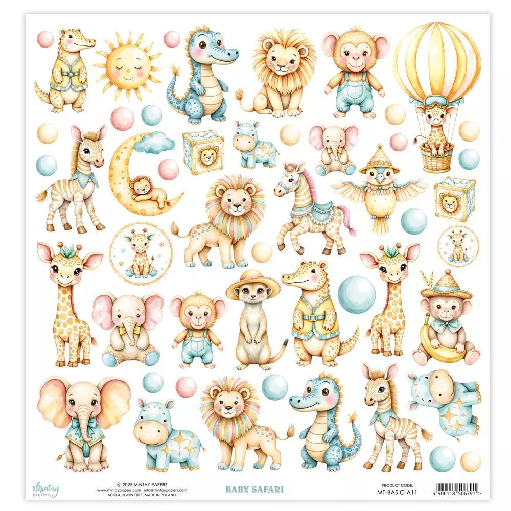Бумага 30х30 см "Baby Safari. Для вырезания" (Mintay)