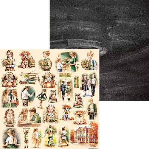 Бумага 30х30 см "Первый звонок. Карточки" (Scrapodelie)